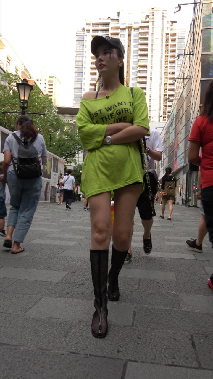 精选街拍视频 VOL.007 美腿长靴黑色鸭舌帽美眉 [1V/1.15GB]